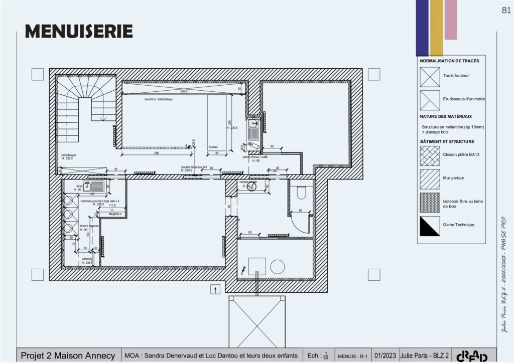 Represent different types of plasterboard on a plan. (waterproof, fireproof, standard, soundproof)